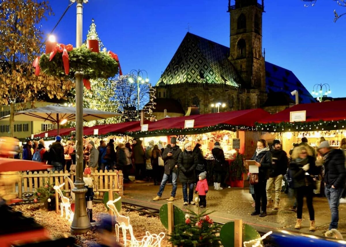 Agli stand gastronomici si possono assaporare frittelle di patate, zuppa di gulasch, krapfen e zelten, accompagnati dal vin brûlé. Di sera, le luci si riflettono sulle mura della cattedrale, regalando un’atmosfera quasi mistica.